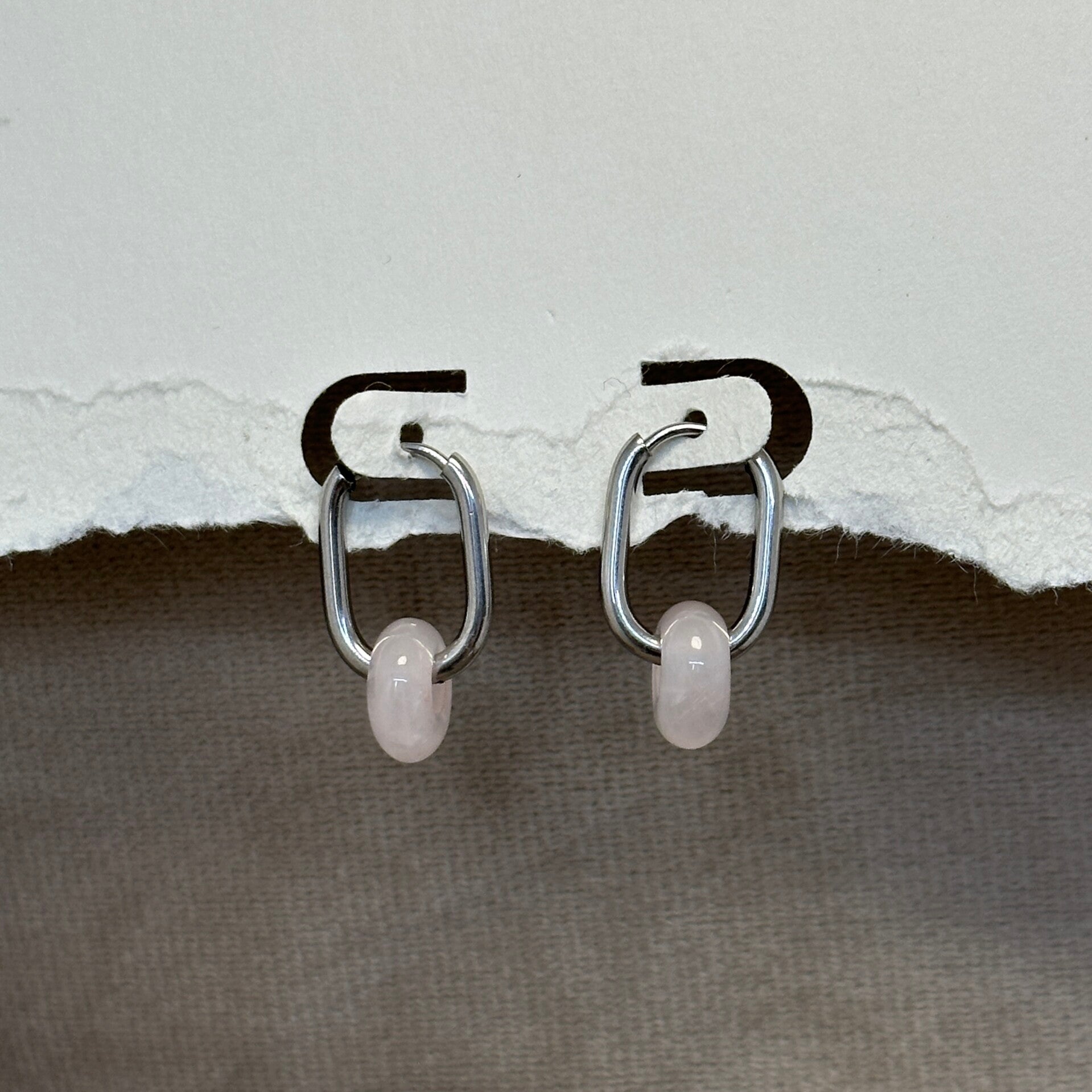 RVS (Zilver) Oorbellen met Rozenkwarts