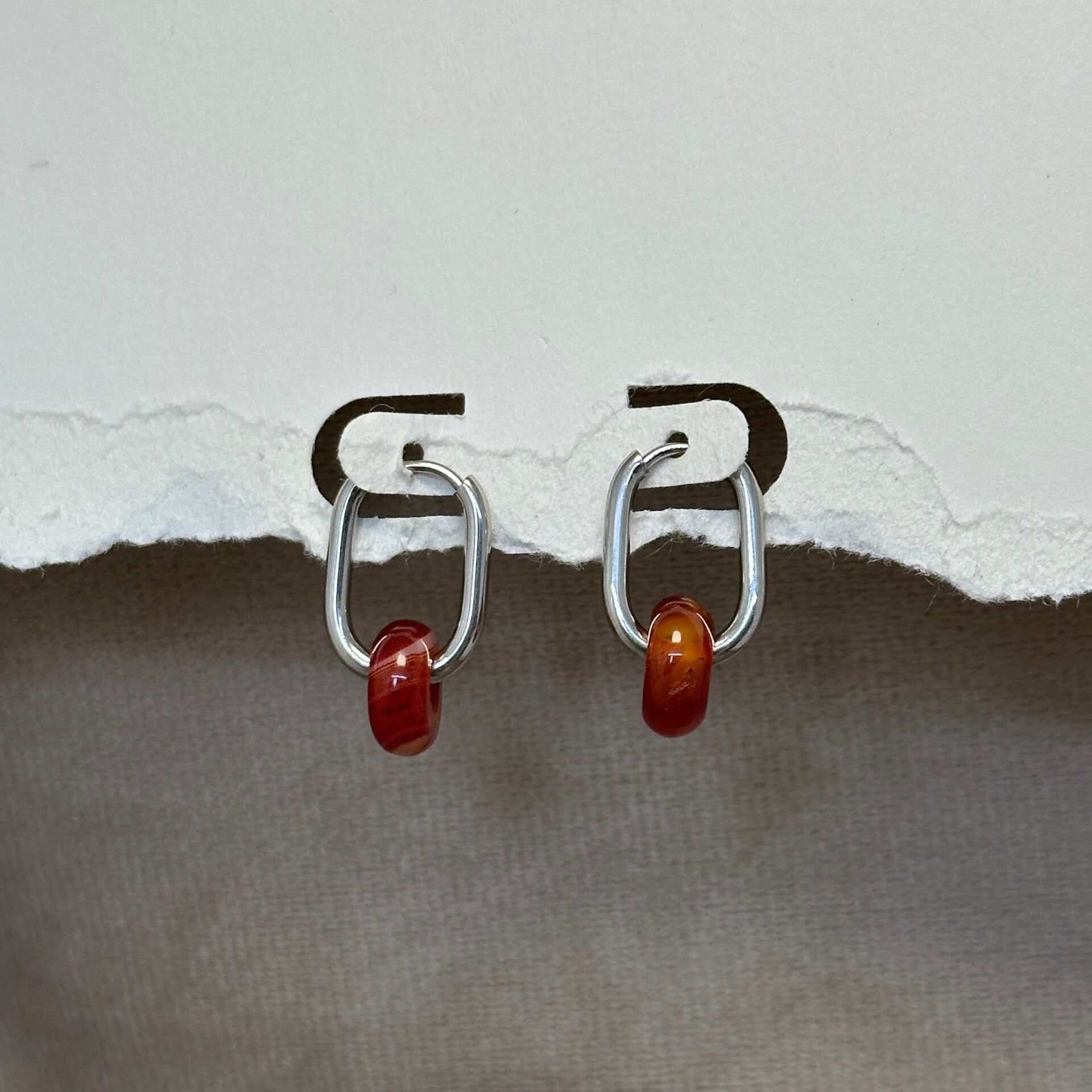 RVS (Zilver) Oorbellen met Carneool
