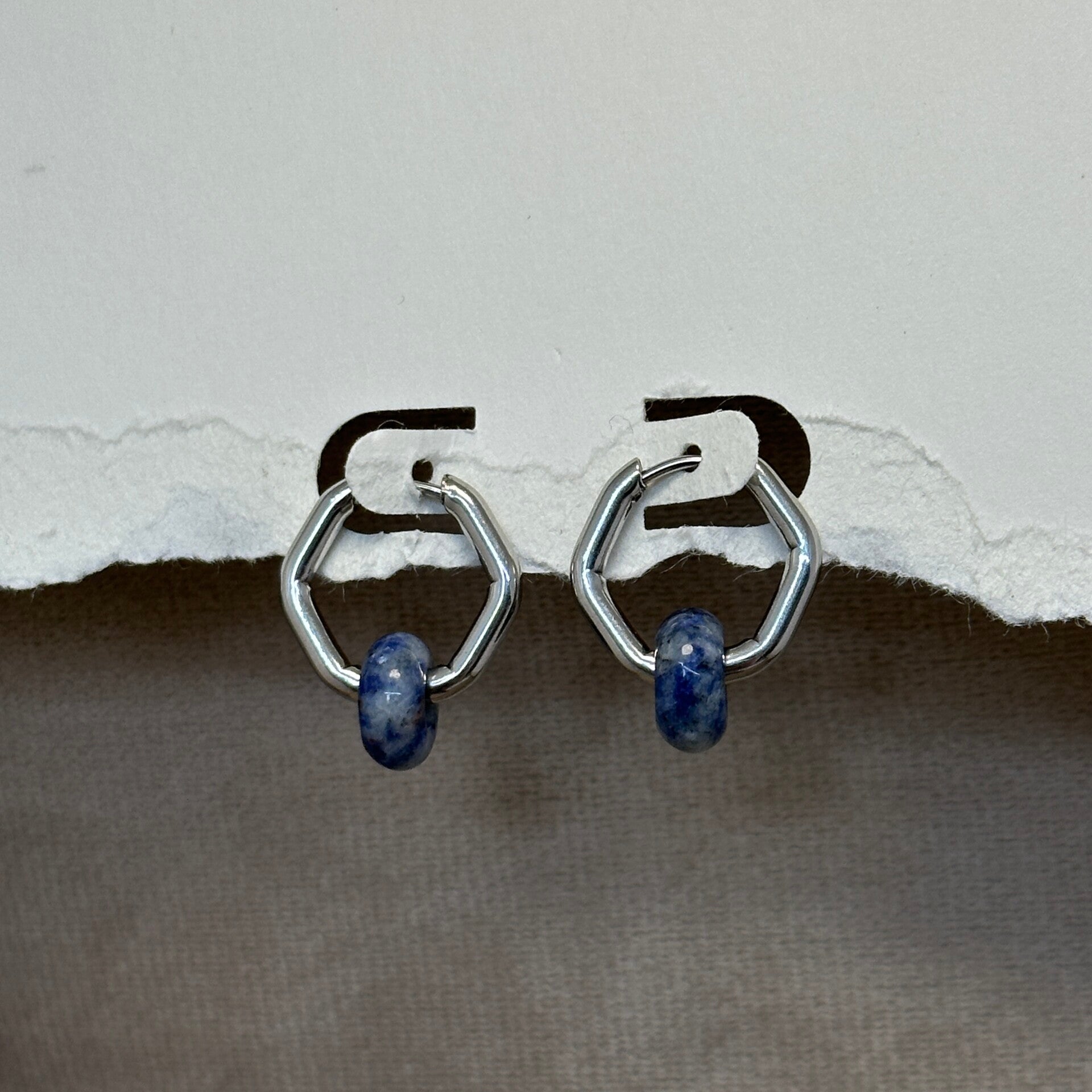 RVS (Zilver) zeshoek Oorbellen met Sodaliet
