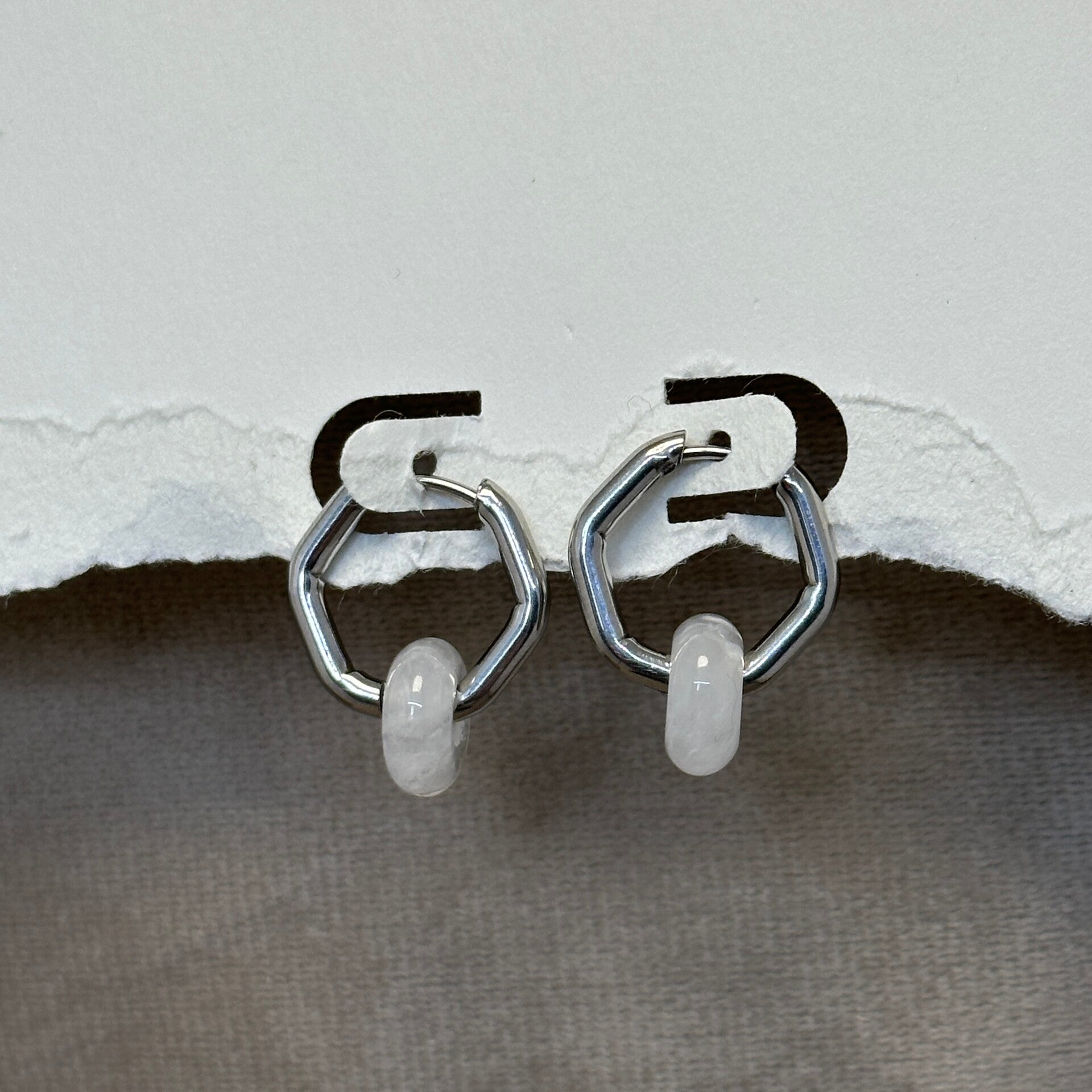 RVS (Zilver) zeshoek Oorbellen met Bergkristal