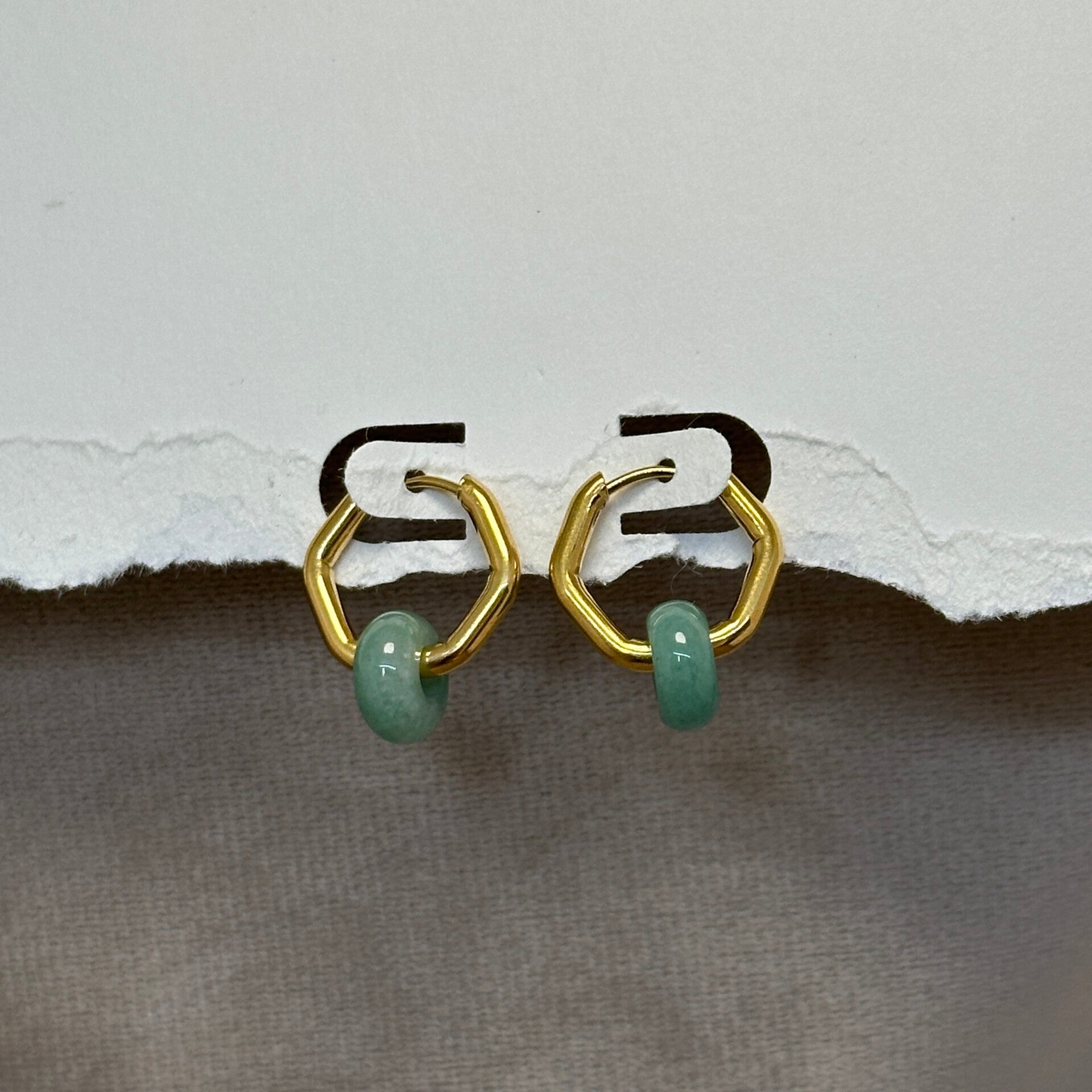RVS (Goud) zeshoek Oorbellen met Aventurijn