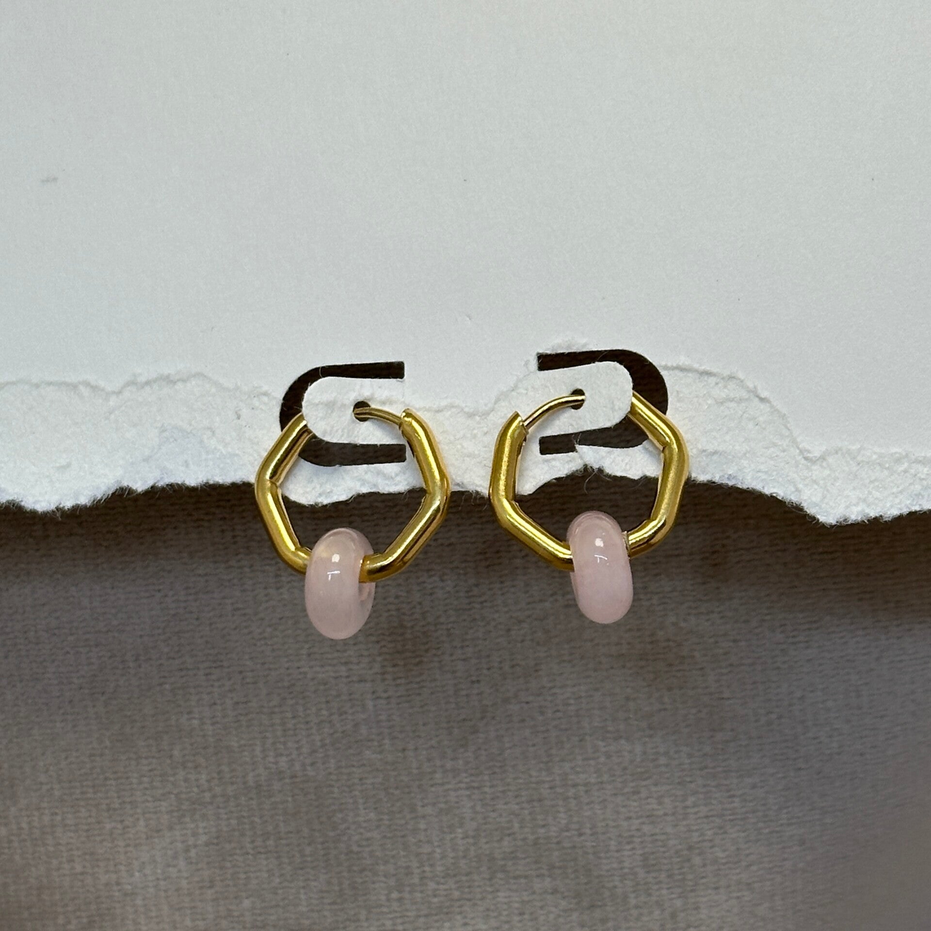 RVS (Goud) zeshoek Oorbellen met Rozenkwarts